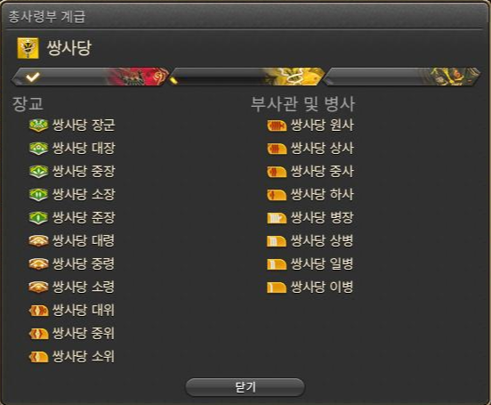 쌍사당은 총 두갈래로 나뉘어지며, 레인저부대와 쌍사당 본대가 있습니다.