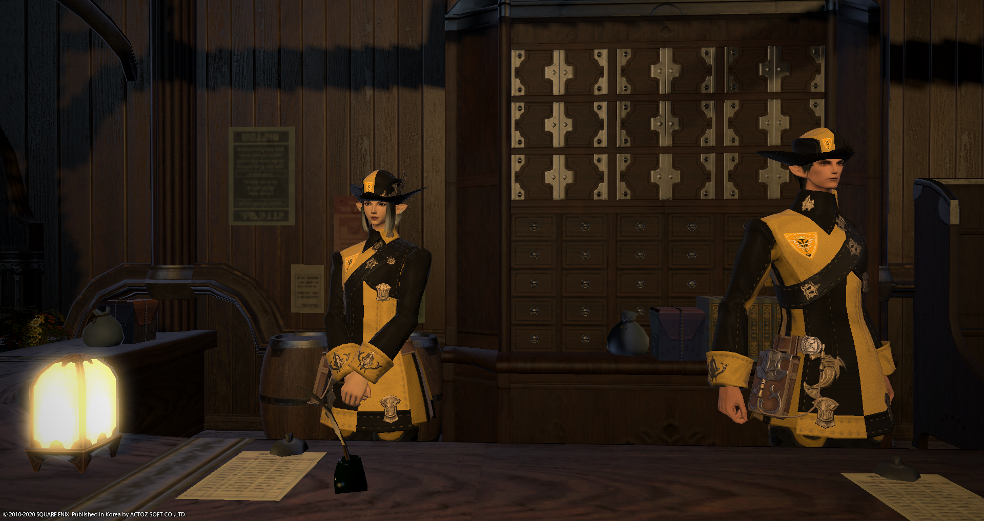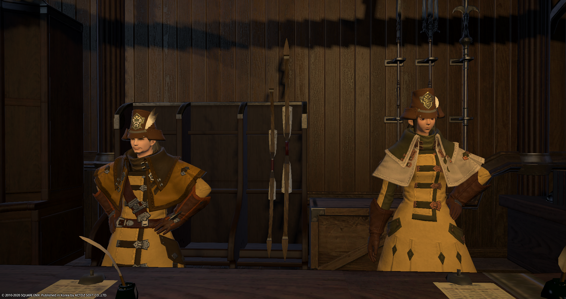 프론트에 있는 두명은 자유부대를 등록하는 업무와 자유부대의 공금을 필요한 물건으로 교환해주는 업무라 저 복장이 자유부대 관련한 복장이라 생각하기 쉽습니다. 하지만 저 복장은 그저 각 총사령부의 문관들이 입고 있는 옷입니다.